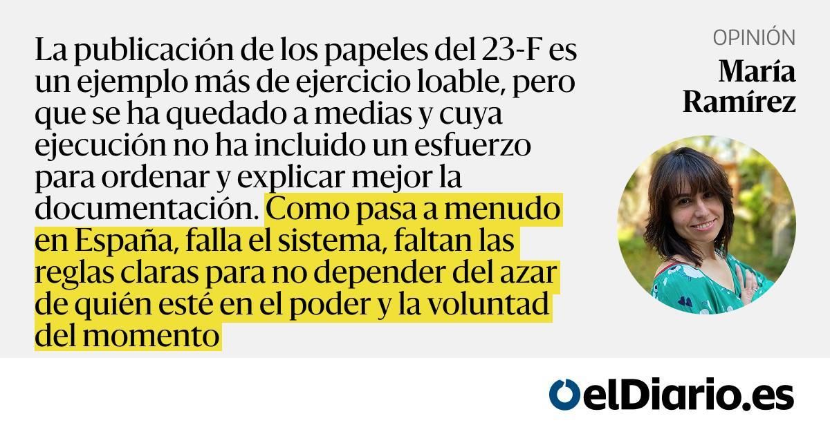 La publicación de los papeles del 23-F es un ejemplo más de ejercicio loable, pero que se ha quedado a medias y cuya ejecución no ha incluido un esfuerzo para ordenar y explicar mejor la documentación. Como pasa a menudo en España, falla el sistema, faltan las reglas claras para no depender del azar...