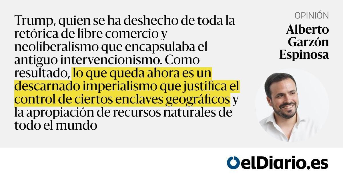 Trump, quien se ha deshecho de toda la retórica de libre comercio y neoliberalismo que encapsulaba el antiguo intervencionismo. Como resultado, lo que queda ahora es un descarnado imperialismo que justifica el control de ciertos enclaves geográficos y la apropiación de recursos naturales de todo el...