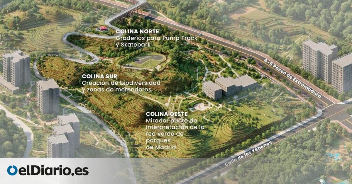 Los montículos se han levantado con la tierra excavada en los túneles del soterramiento de la A-5. Estarán situadas junto a la zona verde del paso elevado ciclista — Las obras para crear los jardines y el paseo sobre la autovía de Extremadura comenzarán en noviembre de 2026...