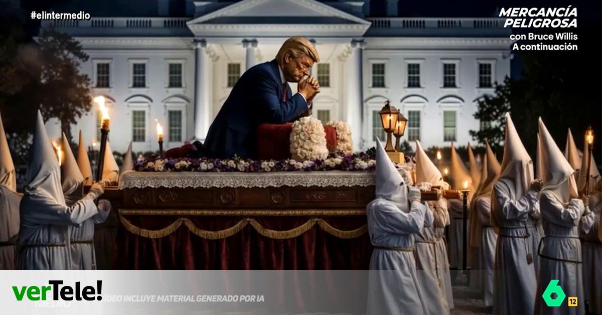 'El Intermedio' arrancó su Semana Santa llevando a cabo una de sus tradicionales procesionales, hecha con esta ocasión con inteligencia artifical. Su protagonista fue Donald Trump, que apareció 'venerado' cual santo por J.D. Vance, Marco Rubio y Elon Musk, que exclamó a su paso “¡guapa, guapa y guap...