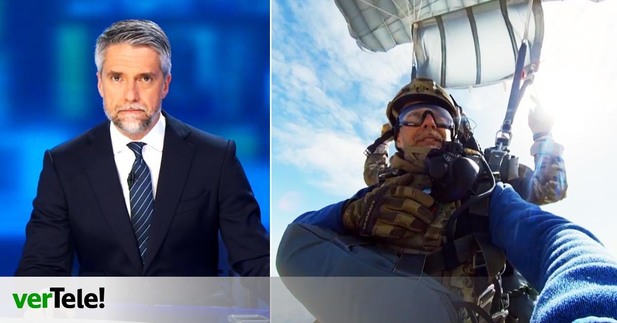 Carlos Franganillo saltó al vacío desde un avión militar en Informativos Telecinco: “¡Qué pasada, qué locura!”