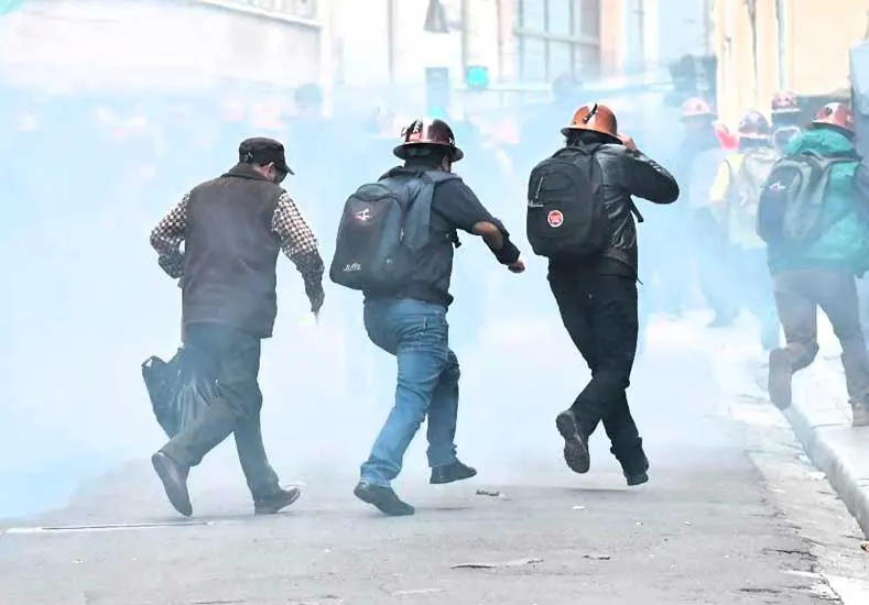 Mineros de la COB arrojan artefacto explosivo a la ALP