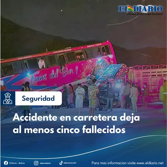Un choque entre un bus y un camión en la carretera Sucre–Potosí dejó al menos cinco muertos y varios heridos la noche del domingo, en un hecho ocurrido cerca de la comunidad de Viña Pampa, según reportes preliminares....