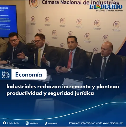 Industriales rechazan incremento y plantean productividad y seguridad jurídica