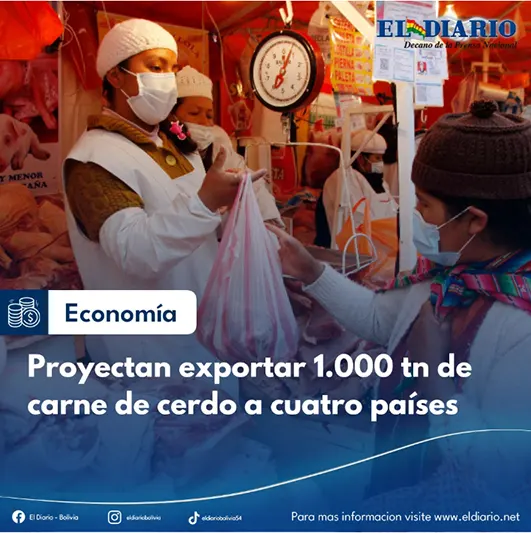 La Asociación Departamental de Porcicultores de Santa Cruz (Adepor) proyecta exportar unas 1.000 toneladas (tn) de carne de cerdo a cuatro países de la región una vez que la Organización Mundial de Sanidad Animal (OMSA) otorgue la certificación de ausencia de peste porcina....