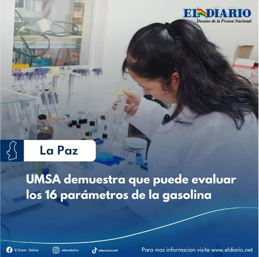 En medio de los conflictos y dudas por la calidad de la gasolina, la Universidad Mayor de San Andrés (UMSA) demostró, a dirigentes transportistas, que cuenta con la capacidad técnica, científica y humana para evaluar de manera integral los 16 parámetros establecidos por la normativa boliviana e inte...