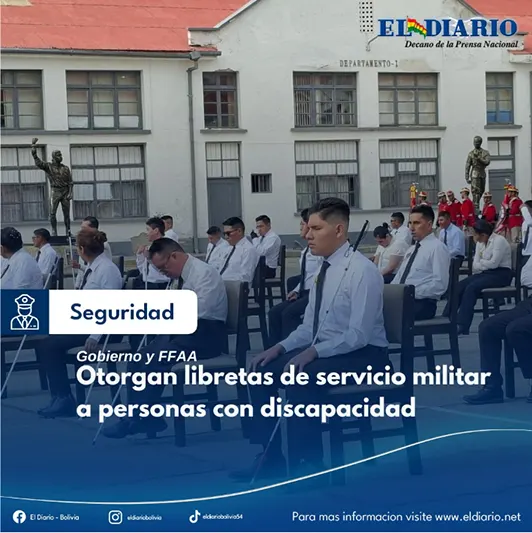 El Gobierno y las Fuerzas Armadas (FFAA) realizaron la entrega de libretas de servicio militar a 41 personas con discapacidad este miércoles en horas de la mañana, en presencia del ministro de Defensa, Marcelo Salinas, en inmediaciones del Estado Mayor, en la ciudad de La Paz....