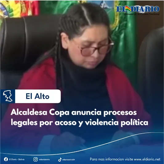 La alcaldesa de El Alto, Eva Copa, anunció que iniciará procesos legales contra unos 10 excandidatos al municipio alteño, quienes deberán responder ante la justicia por delitos como calumnias, difamación, injurias, acoso y violencia política....