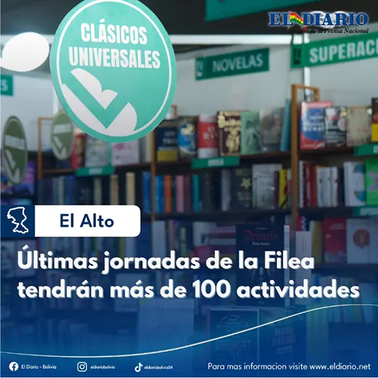 La tercera Feria Internacional del Libro de El Alto (Filea) ingresa en su última semana con una agenda intensa que superan el centenar de actividades que reúnen literatura, arte y reflexión. El encuentro cultural se desarrolla hasta el 12 de abril, en sus tres espacios la sala “Saturnina”, la sala “...