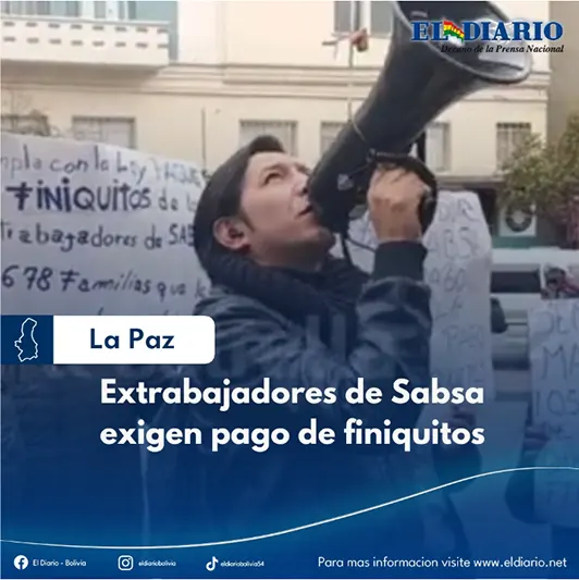 El representante de los extrabajadores de Sabsa, Elioth Aduviri, solicitó una reunión con el Ministro de Obras Públicas, Mauricio Zamora, para que se cumplan las sentencias que ordenan el pago de finiquitos, que asciende alrededor de un total de 120 millones de bolivianos....