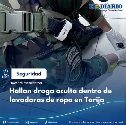 La Fuerza Especial de Lucha Contra el Narcotráfico (Felcn) realizó operativos de control en el área de carga de la Terminal de Buses de Tarija, donde se encontraron dos lavadoras de ropa con nueve paquetes de droga ocultos en su interior....