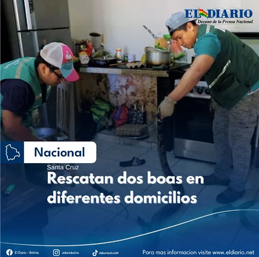 La Gobernación de Santa Cruz, a través de su equipo de rescate de fauna silvestre, atendió de manera oportuna dos llamados ciudadanos, logrando el rescate de dos boas constrictoras halladas en domicilios particulares independientes. (Santa Cruz, agencias)...