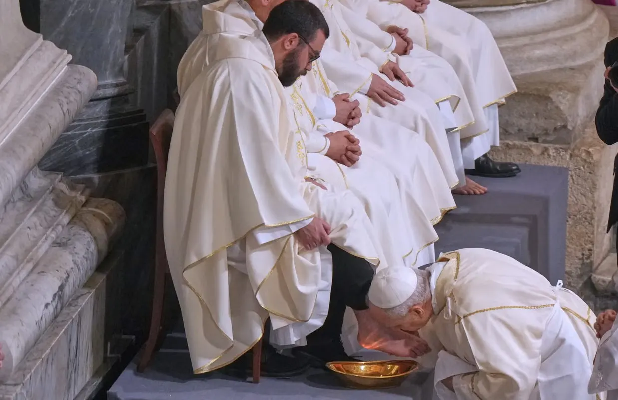 El Papa realizó lavado de pies a sacerdotes en Jueves Santo