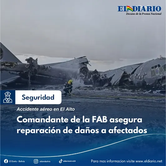 El comandante de la Fuerza Aérea Boliviana (FAB), Sergio Lora, declaró ante la Fiscalía en el marco de la investigación por el accidente aéreo ocurrido el 27 de febrero en El Alto. Señaló que se ejecutan acciones para reparar los daños y asistir a las personas afectadas....