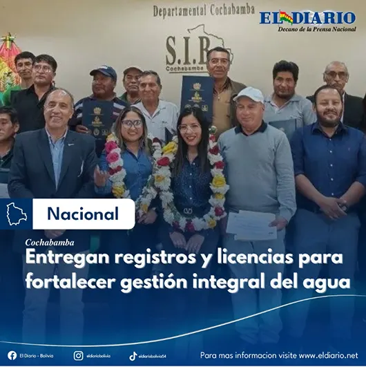 La viceministra de Recursos Hídricos, Riego, Agua Potable y Saneamiento Básico, Viviana Mariscal Montaño, realizó la entrega de registros colectivos de riego, así como de registros y licencias a Entidades Prestadoras de Servicios de Agua Potable y Saneamiento (EPSAS), en el marco del fortalecimiento...
