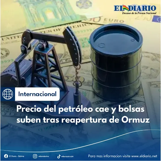 Precio del petróleo cae y bolsas suben tras reapertura de Ormuz