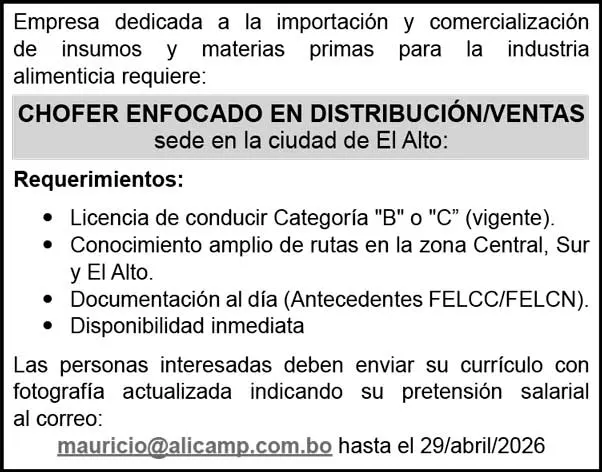 CHOFER ENFOCADO EN DISTRIBUCIÓN/VENTAS