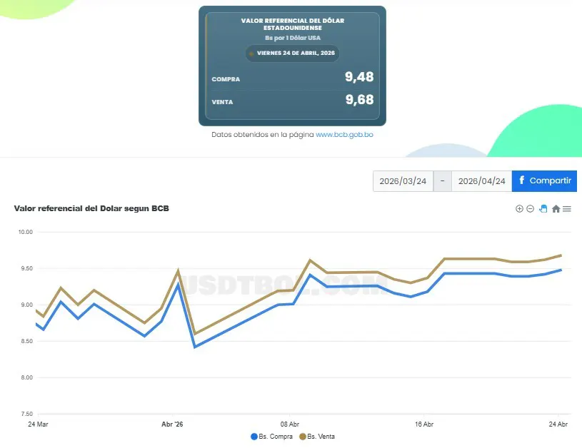 Tipo de cambio referencial cierra con Bs 9,68 por $us 1