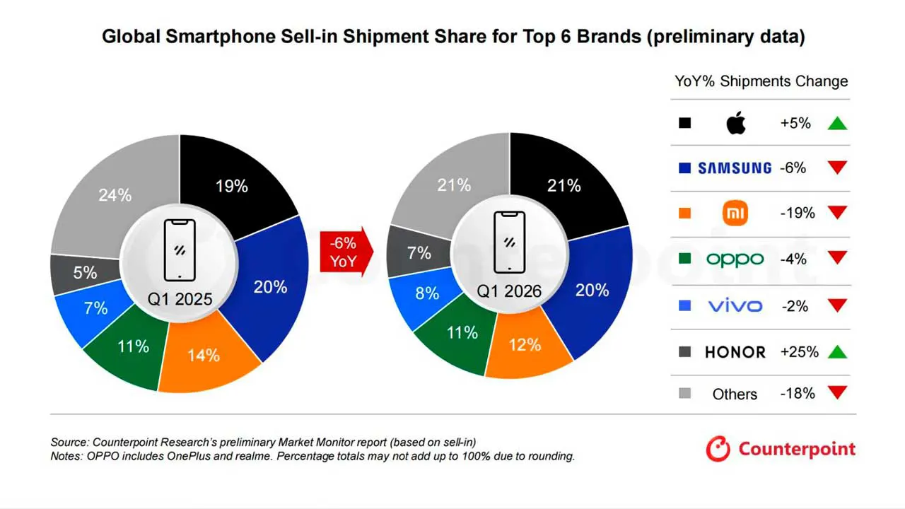HONOR lidera el crecimiento global de smartphones en el primer trimestre de 2026