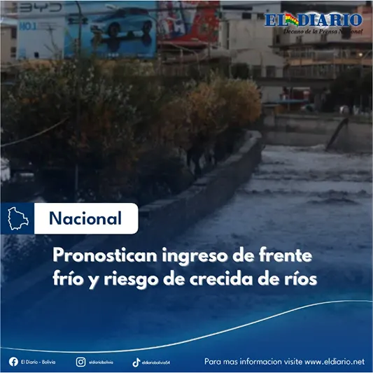 Pronostican ingreso de frente frío y riesgo de crecida de ríos