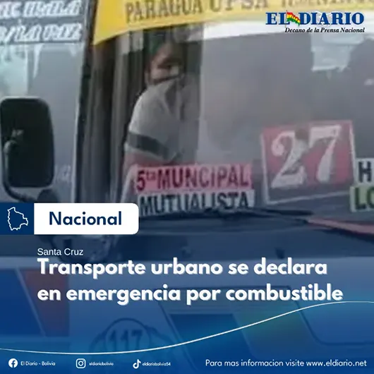 Ante la situación irregular de combustible que afecta al transporte público en Santa Cruz de la Sierra, Bismark Daza, dirigente del Transporte Urbano, anunció que el sector se ha declarado en emergencia y tendrán un ampliado nacional este miércoles 29 de abril, para determinar las acciones a seguir...