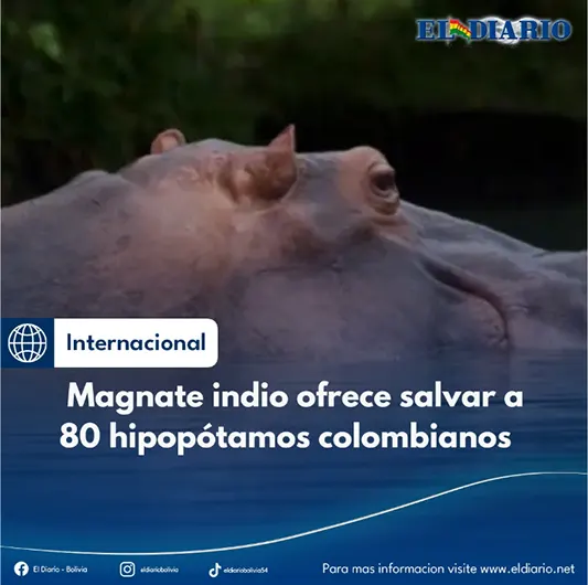 El heredero multimillonario indio Anant Ambani ofreció al Gobierno colombiano llevarse 80 hipopótamos a su propio centro de rescate de fauna en el oeste de la India, después de que Bogotá autorizara la eutanasia para controlar a esta especie invasora introducida en el país por el narcotraficante Pab...