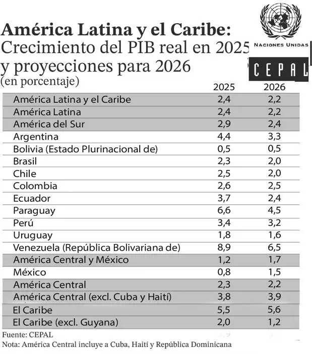 A pesar de que el Gobierno estima una contracción de la economía de -1,28% en 2026, la Comisión Económica para América Latina y el Caribe (Cepal) proyecta un leve crecimiento de 0,5%, la más baja de la región. La Cepal es más optimista, ya que el Banco Mundial y el Fondo Monetario internacional (FMI...