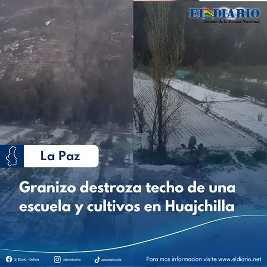 Una intensa granizada destruyó la producción de hortalizas y flores, además causó la caída del techo de una unidad educativa y afectó a decenas de familias en la comunidad de Huajchilla, del municipio de Mecapaca en el departamento de La Paz....