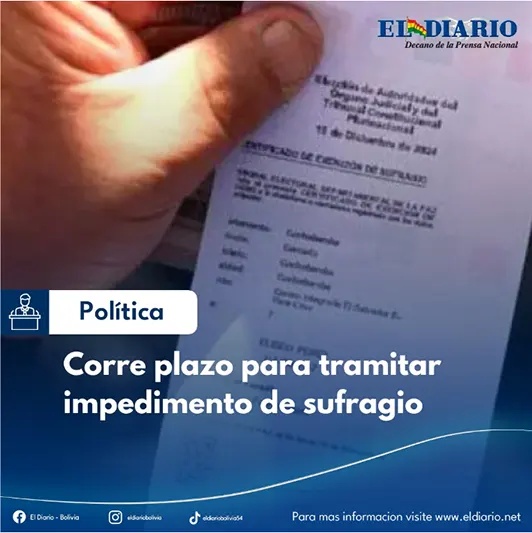 Desde el Tribunal Supremo Electoral (TSE) se informó que, aquellas personas que no pudieron sufragar, de forma justificada, en la segunda vuelta de las Elecciones Subnacionales 2026, del pasado domingo 19 de abril, tiene 30 días para tramitar un certificado de impedimento de sufragio ante su respect...