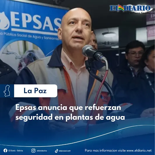 Tras presuntas amenazas sobre la toma de instalaciones, el gerente interventor de la Empresa Pública Social de Agua y Saneamiento (Epsas), Edgar Landívar, informó que se ha incrementado el personal de seguridad en las distintas plantas de la entidad, con el objetivo de prevenir esa posible situación...