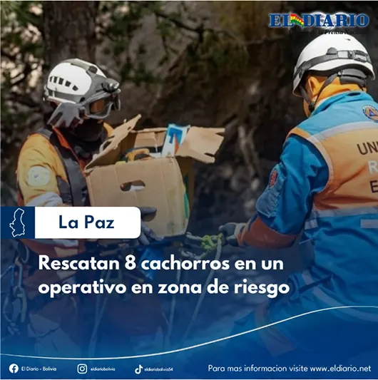 Tras un operativo de rescate riesgoso, personal municipal logró salvar a ocho cachorros que se encontraban en una especie de madriguera ubicada al medio de un talud en un sector de la Primera Sección de Achumani....