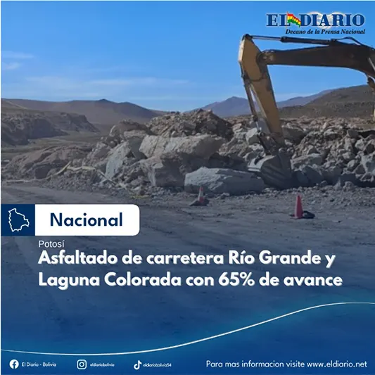 El asfaltado de la ruta entre Puente Río Grande – Cruce Laguna Colorada, ubicada en el municipio de Colcha K, provincia Nor Lípez, tiene el 65% de avance, obra presenta una demora significativa debido al incremento en los costos de materiales de construcción y combustibles, situación que viene afect...