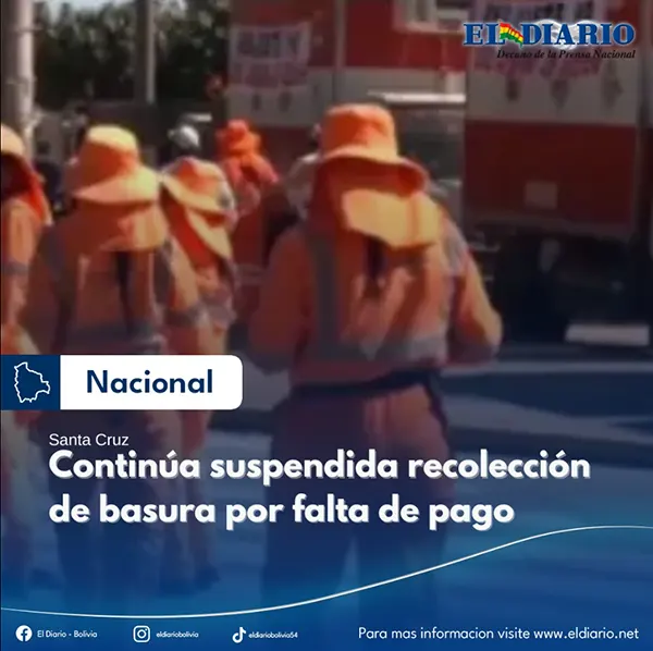 El gerente de operaciones de la empresa Piraí, Marcelo Delfín, confirmó que el servicio de aseo urbano continúa suspendido debido a la falta de pago por parte del municipio, que acumula una deuda de aproximadamente ocho meses. (Santa Cruz, agencias)...