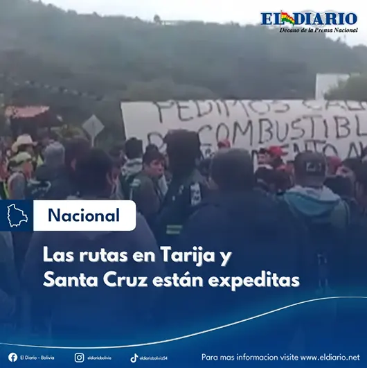 Las rutas en Tarija y Santa Cruz están expeditas
