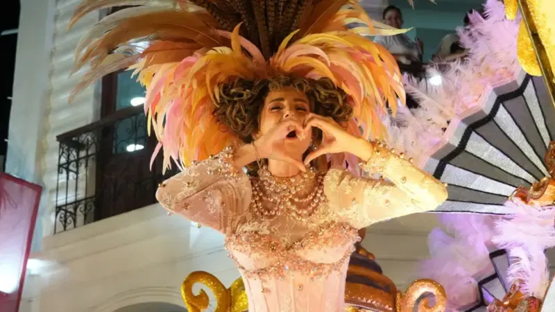 > La soberana derrochó alegría y belleza desde su majestuoso carro alegórico, en una noche color, ritmo y tradición....
