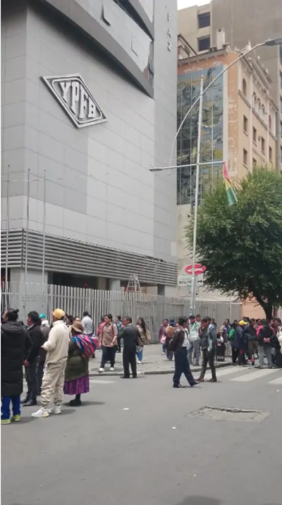 Están cerrados ambos carriles de la avenida 16 de Julio en puertas del edificio de Yacimientos Petrolíferos fiscales Bolivianos en la ciudad de La Paz por una protesta de choferes tras romper el diálogo con el Gobierno sobre el resarcimiento por la gasolina desestabilizada que habría dañado sus auto...