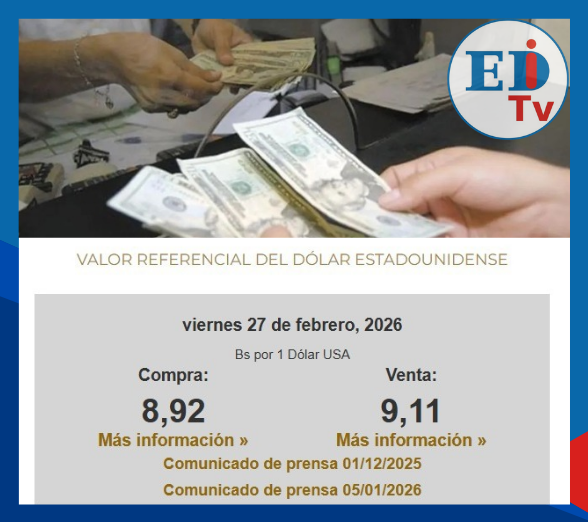 Dólar paralelo en descenso: Bs 9,25 para compra (14:57) 27 feb 2026, 19:06 ... Redirecting to full article...