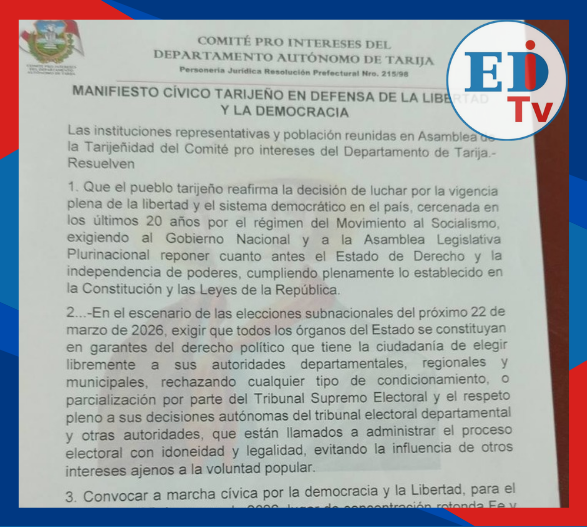 Marcha por la democracia prevé congestión vehicular en Tarija (15:36) 5 mar 2026, 19:38 ... Redirecting to full article...