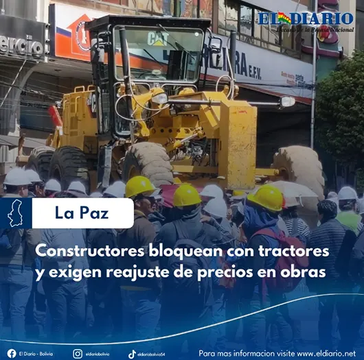 El sector constructor del país realiza un “tractorazo” en diferentes regiones del país como acto de protesta y exigiendo el reajuste de precios de las obras de inversión pública. En la urbe paceña, los movilizados usaron tractores para impedir el tránsito vehicular en el centro....