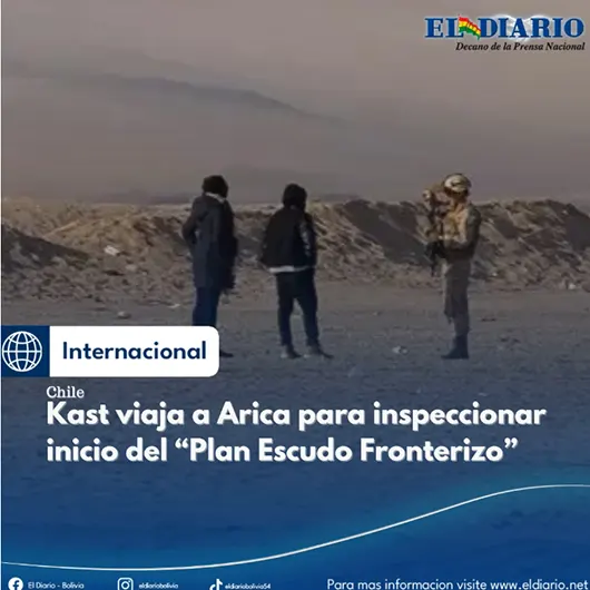En el punto de Observación Fronteriza del complejo Chacalluta, en Arica, el presidente de Chile, José Antonio Kast, dará inicio este lunes al “Plan Escudo Fronterizo” e inspeccionará los trabajos de movimiento de tierra en la frontera que realiza el Ejército para la construcción de una zanja....