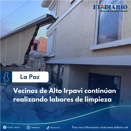 Tras la tremenda lluvia registrada la pasada jornada en el sector sur de La Paz, vecinos de Alto Irpavi continúan realizando labores de limpieza en sus domicilios. Piden ayuda de las autoridades, sobre todo, municipales para terminar de retirar el granizo y algunos escombros....