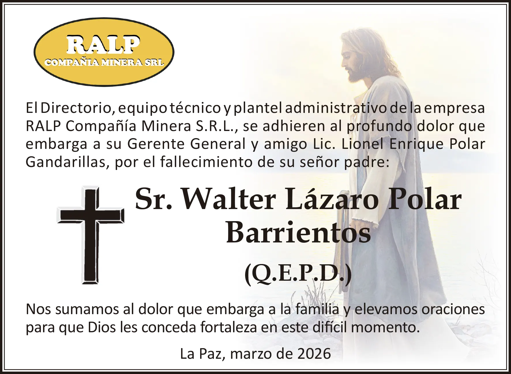 Sr. Walter Lázaro Polar Barrientos
