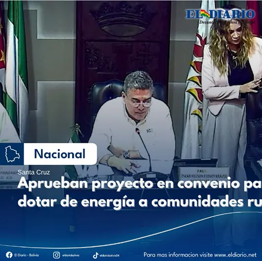 En sesión ordinaria de la nueva directiva de la Asamblea Legislativa Departamental de Santa Cruz, a la cabeza de su presidente, Oscar Fenney, se aprobó por unanimidad el proyecto de electrificación entre la Gobernación cruceña y la empresa estatal de electrificación ENDE, (en representación del Gobi...