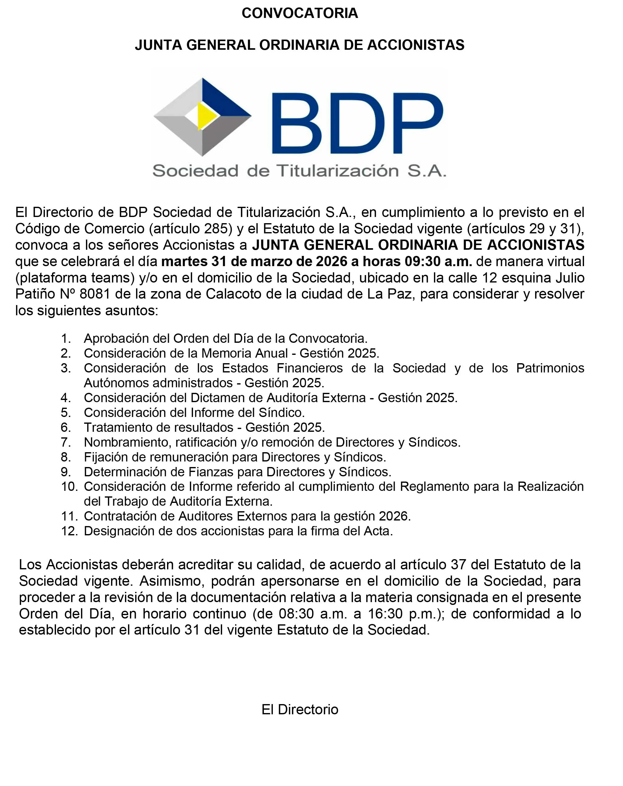 JUNTA GENERAL ORDINARIA DE ACCIONISTAS