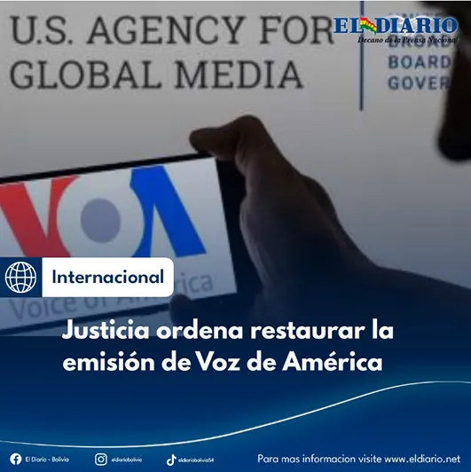 La Justicia de Estados Unidos ha ordenado a la Administración de Donald Trump restaurar por completo la emisión de Voice of America (Voz de América) y reincorporar a miles de trabajadores afectados por lo que considera como un «cierre ilegal» que llevó al «mínimo» las operaciones de la cadena....