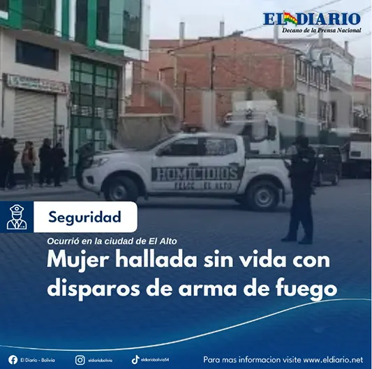 Este jueves fue hallado en plena vía pública el cuerpo sin vida de una mujer en la zona san Luis Pampa, en la ciudad de El Alto. El cadáver de la víctima presentaba dos impactos de arma de fuego....