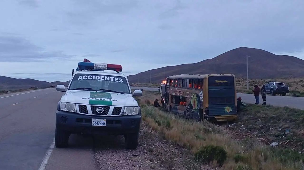 Bus vuelca en Caracollo y deja personas heridas