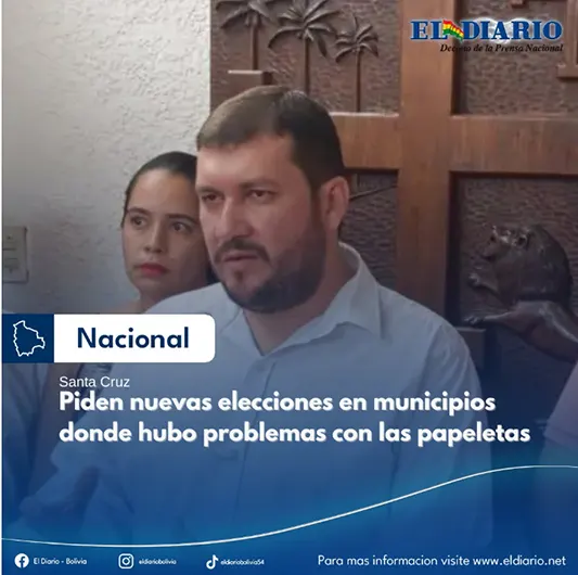 El presidente del Comité Cívico pro Santa Cruz, Stello Cochamanidis, considera que hubo una mala organización en las elecciones subnacionales y planteó que se repita la votación en municipios donde se registraron problemas con las papeletas electorales. (Santa Cruz, agencias)...