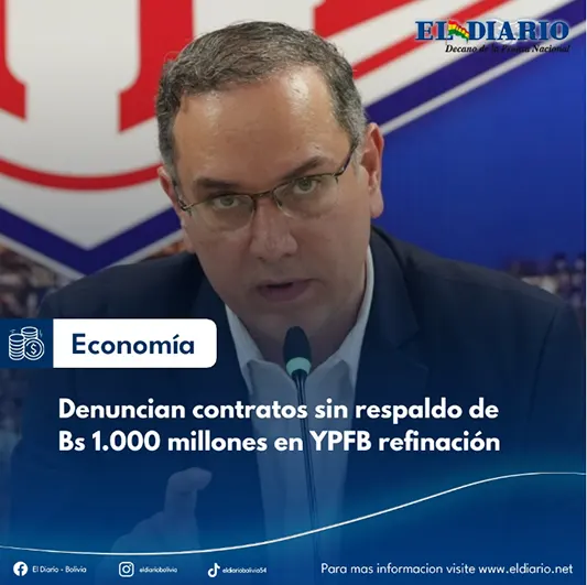 Denuncian contratos sin respaldo de Bs 1.000 millones en YPFB refinación