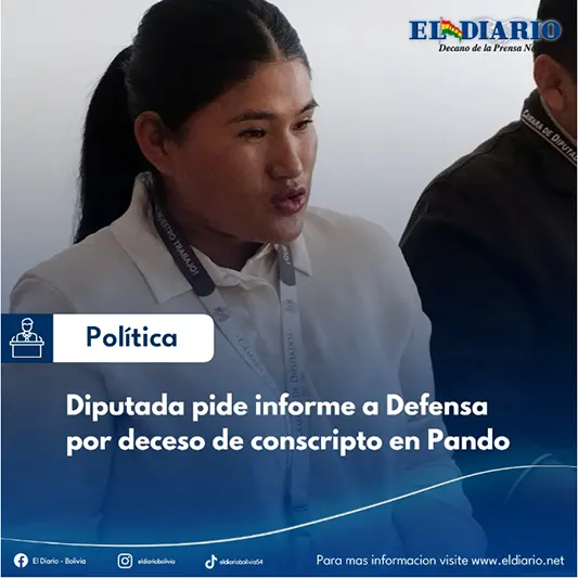 Diputada pide informe a Defensa por deceso de conscripto en Pando